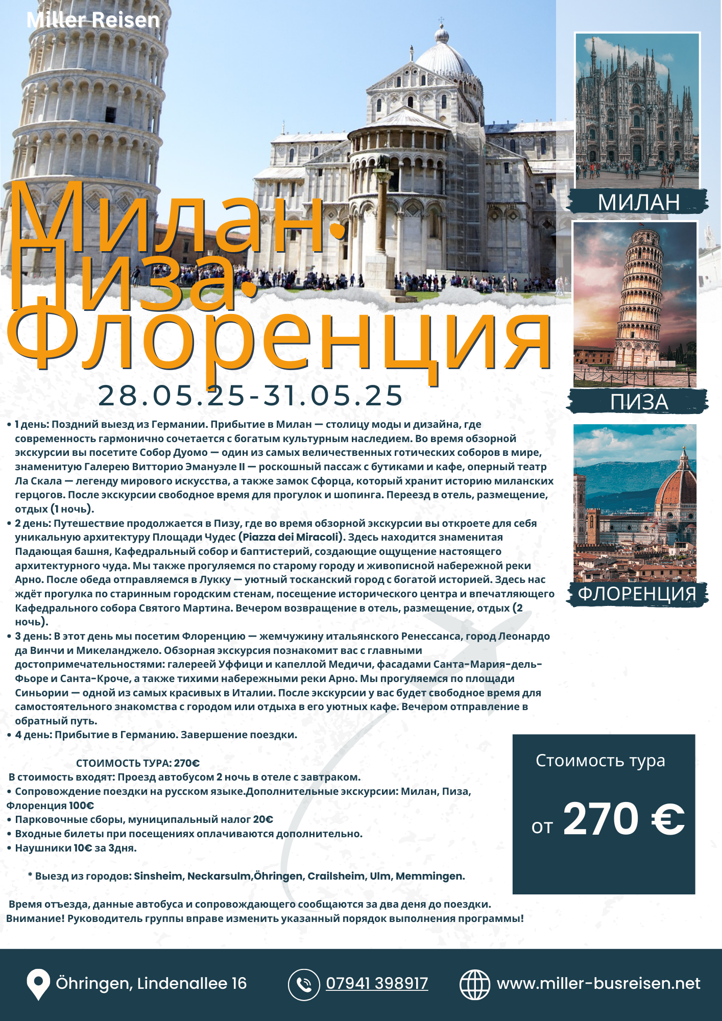 Дополнительные экскурсии: Милан, Пиза, Флоренция 100€